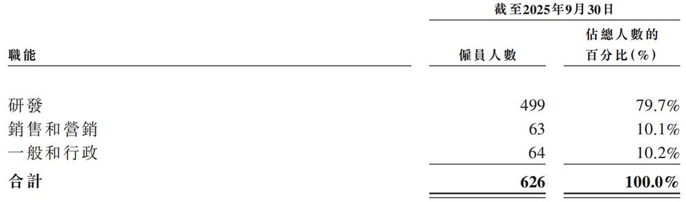 截至2025年9月30日,爱芯元智拥有499名研发人员,占总员工数的约80%,其中一半以上拥有硕士或以上学位;拥有631项专利及专利应用,包括在中国拥有250项已授权专利,包括225项发明,及在美国及其他司法管辖区拥有20项已授权专利,均为发明。