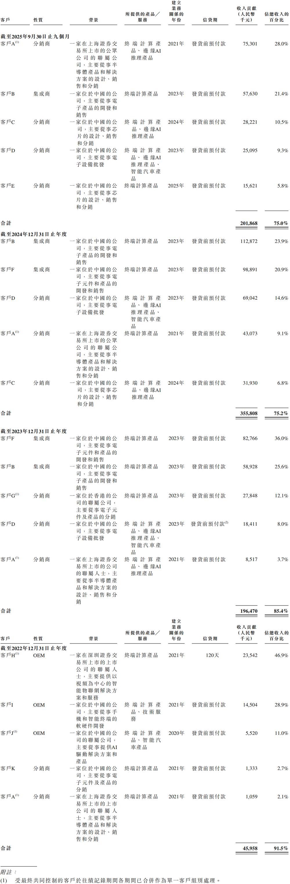 客户A、客户C、客户E、客户J亦是其供应商。客户A和客户J均为最终共同控制下的一组实体,被合并视为单一客户群组。