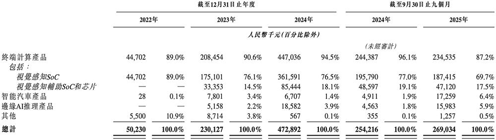2022年至2025年9月底,爱芯元智有超8成的收入来自终端计算产品(包括视觉感知SoC、视觉感知辅助SoC和芯片)。