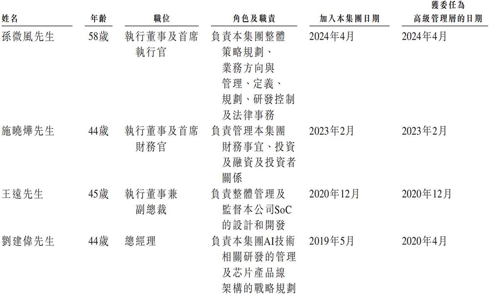 核心高管中,孙微风于2024年2月加入爱芯元智,现担任CEO,今年58岁。