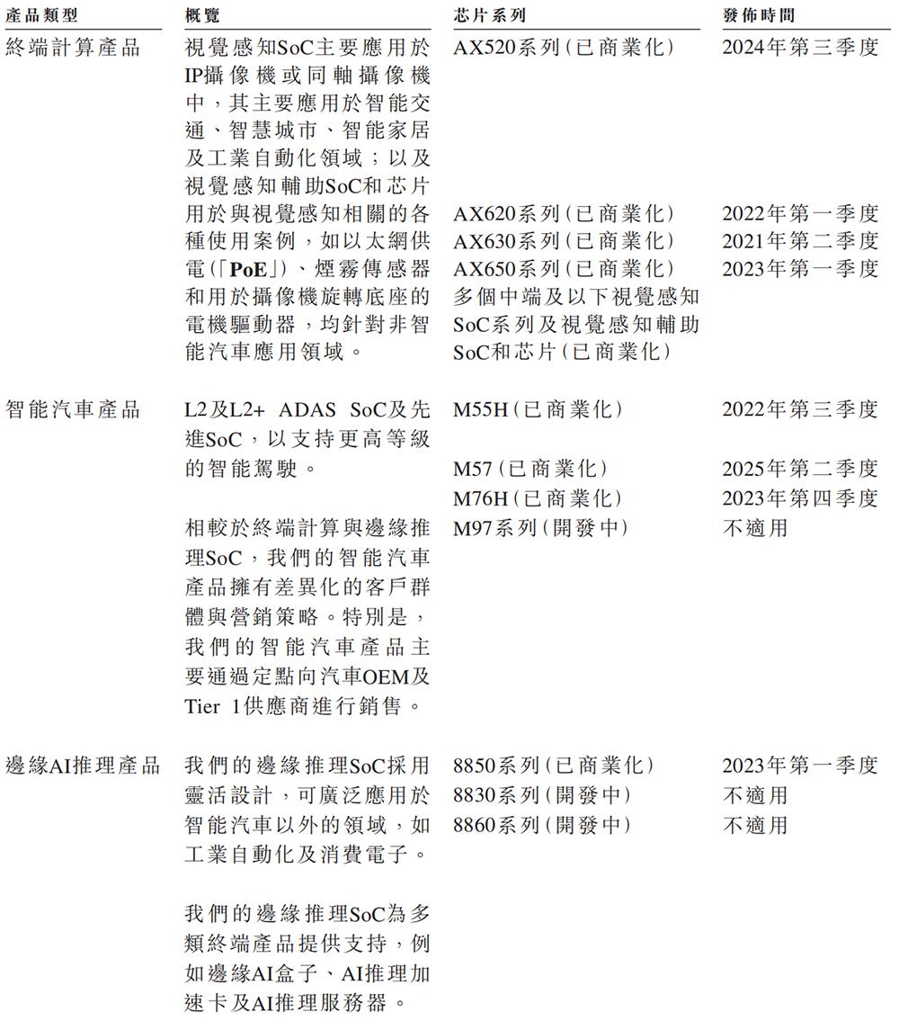 截至2025年9月30日,爱芯元智已独立开发五代SoC并实现其商业化,涵盖数十种类型,已在视觉终端计算、智能汽车和边缘AI推理应用中实现大规模生产;累计交付的SoC超过1.65亿颗。