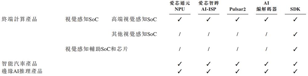 爱芯元智核心技术在上述产品类型中的应用如下: