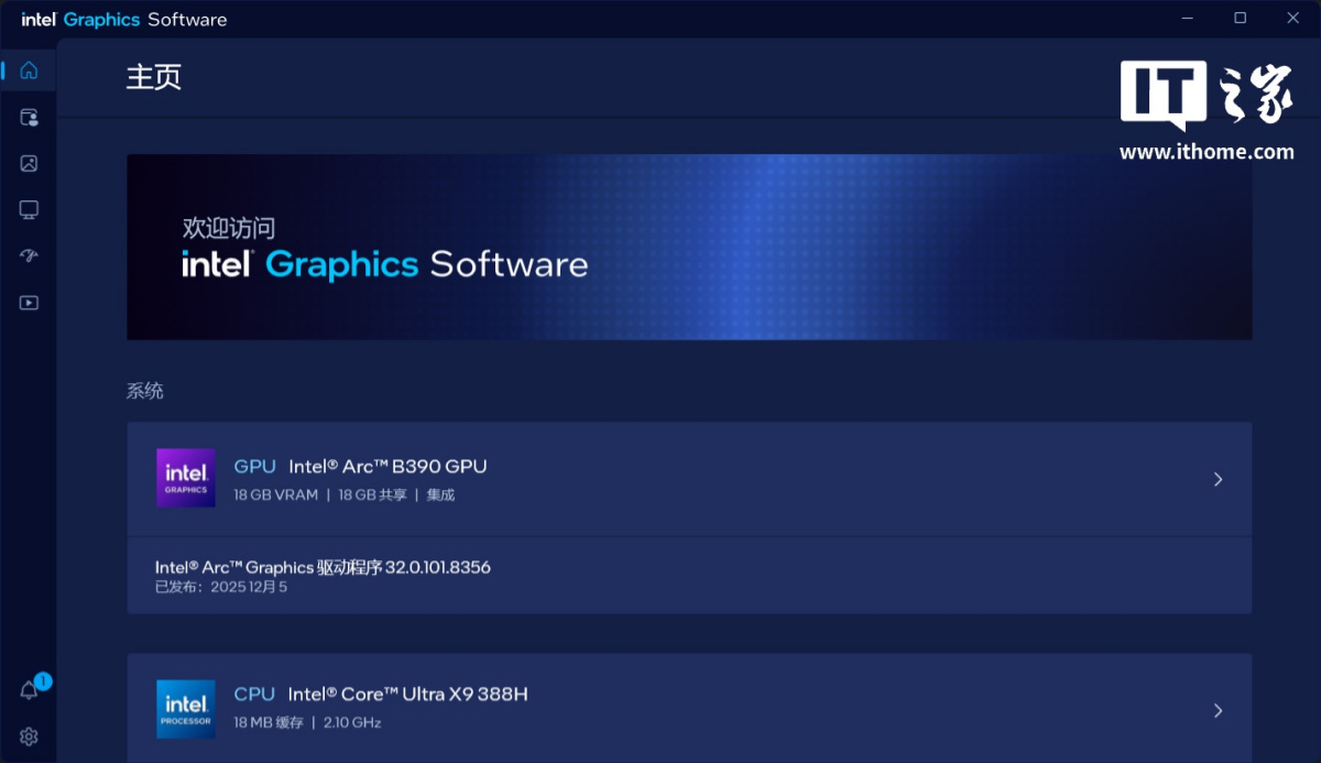 另外,英特尔对于 GPU 性能的管理更加积极,系统出厂预装了 CPU 和 GPU 硬件管理工具,可以看到 CPU、GPU 的具体硬件规格信息。