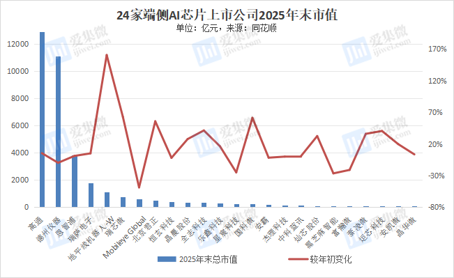 2025年,随着人工智能加速从云端向终端渗透,端侧AI芯片产业迎来了关键的发展转折点。这一年,行业在技术突破、场景落地与资本市场的多重共振中,呈现出一幅“整体向上、内部分化”的生动图景。通过对二十余家国内外代表性公司的市值变化分析,我们可以清晰地看到一条以技术为尺、以场景为锚的价值重塑轨迹。