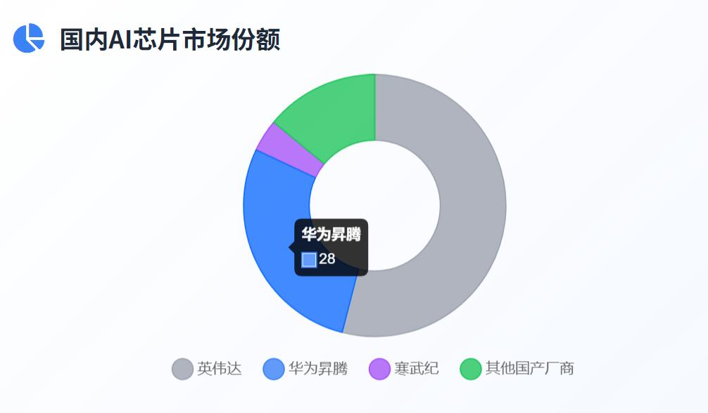 国内市场,国产最强玩家是华为昇腾,2025年市占率大约在28%,其次是寒武纪约4%,其他国产厂商合计约14%,约54%还是英伟达。