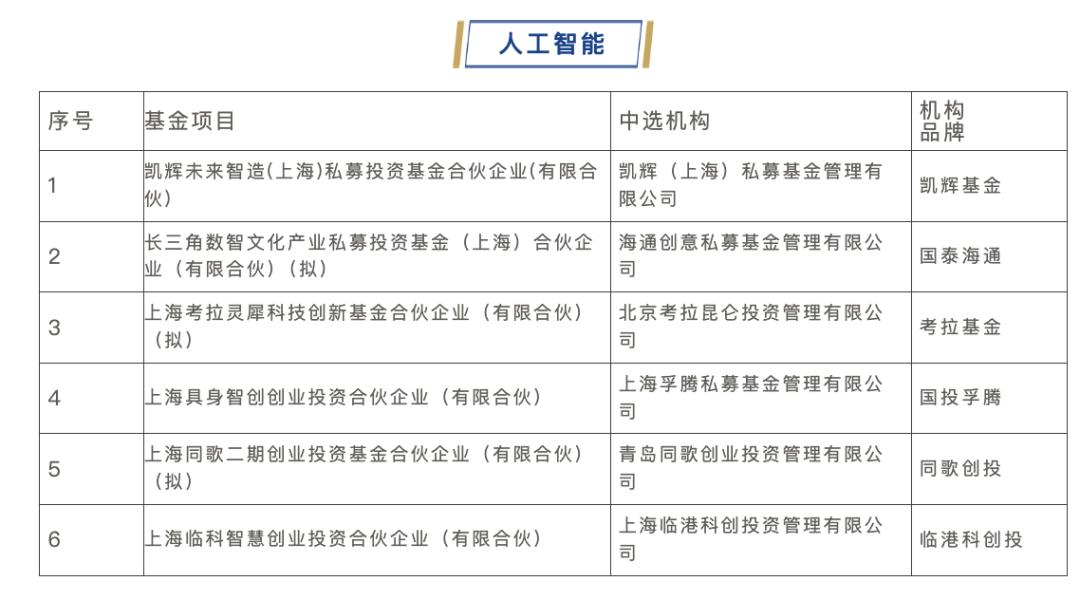人工智能行业第三批共遴选中选子基金6只,合计投决总额约15.7亿元,整体放大倍数约5.8倍。首先是以凯辉、同歌为代表的行业链主CVC基金;二是以孚腾具身、临港科创、考拉基金及长三角数智为代表的早期培育型基金,重点面向具身智能、AI应用、AI4S等方向。