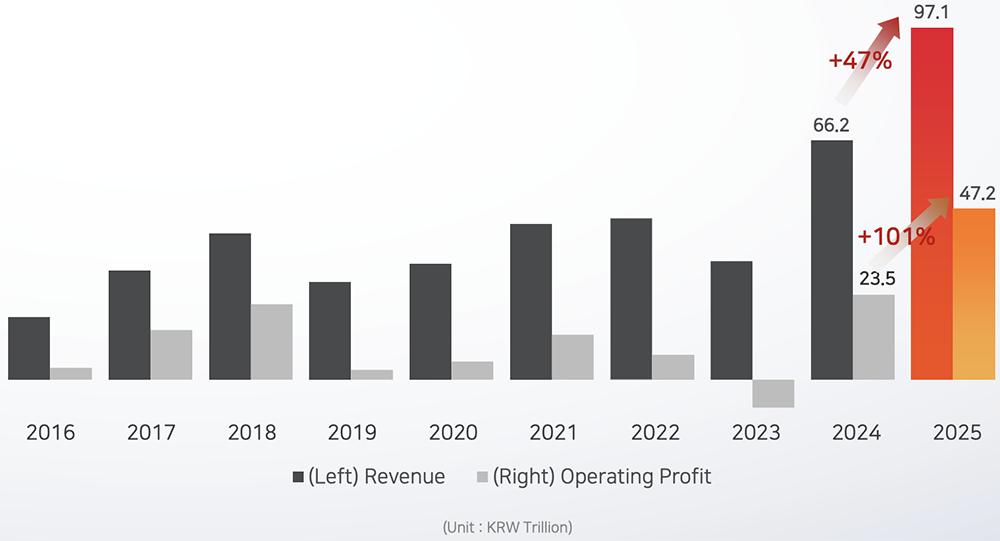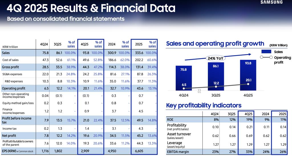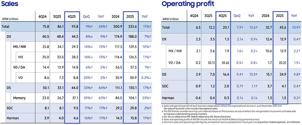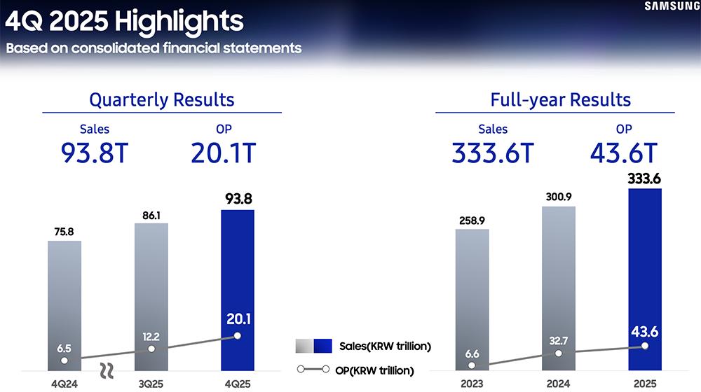 三星在新闻稿中写道,第四季度,内存业务通过满足强劲的传统DRAM需求,并在整体价格上涨的情况下扩大HBM销售,实现了季度收入和营业利润的历史新高。