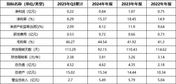 2025年Q3力合微风险指标结构优化,短期可控性强。资产负债率连续三年维持30.1%,低于行业均值40%;债务结构优化:短期负债占比从60%降至50%,1.2亿元短期贷款置换为5年期低息贷款,利息负担减少0.024亿元/年。