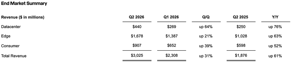 第二季度,闪迪数据中心收入达到4.40亿美元(约合人民币31亿元),环比增长64%。这主要得益于“AI基础设施建设者、半定制客户以及大规模部署AI的技术公司对AI的强劲采用”,企业级固态硬盘(SSD)的需求正在加速增长,推理业务的增加导致每次部署所需的NAND闪存容量增加。