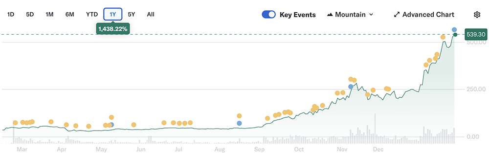 自闪迪在2025年从西部数据分拆出来并独立上市后,在AI驱动的需求激增影响下,闪迪股价在过去一年飙升1438%,其中仅是今年迄今就上涨了127%。