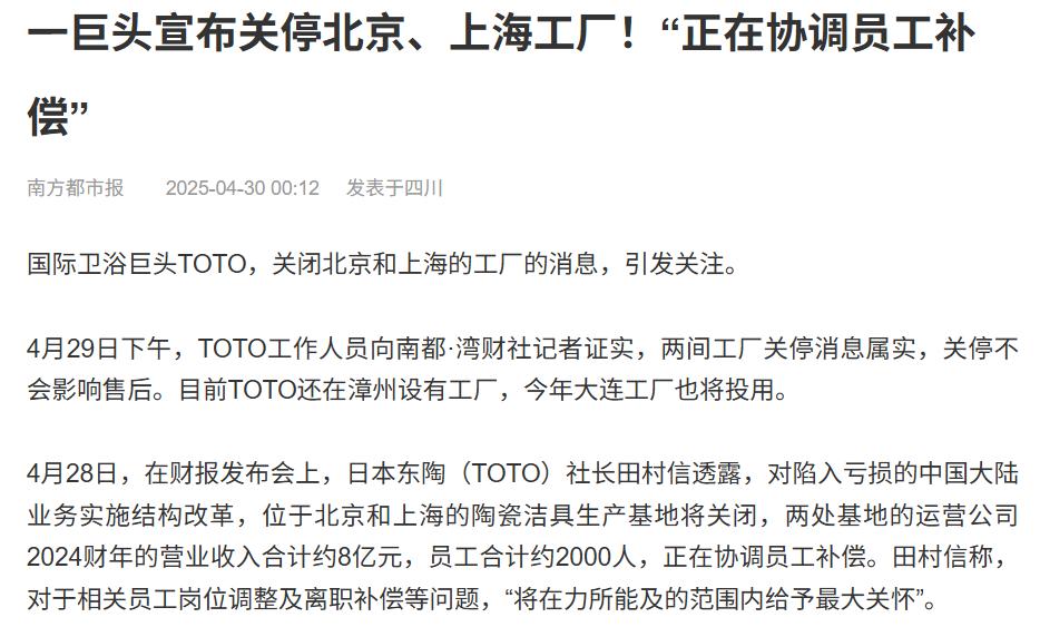 如果你只看传统卫浴产品,东陶这几年在国内被打得丢盔弃甲,从年赚几亿,到亏损数千万,还关掉了运营多年的北京、上海工厂,国产品牌正在疯狂吞噬它的份额。