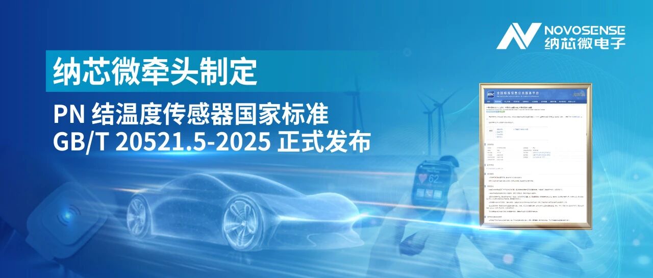 近日,由纳芯微牵头制定的PN 结半导体温度传感器国家标准正式发布。该标准围绕器件定义、关键性能指标及测试方法建立统一技术框架,为高精度、高可靠测温应用提供了明确、可执行的技术依据。