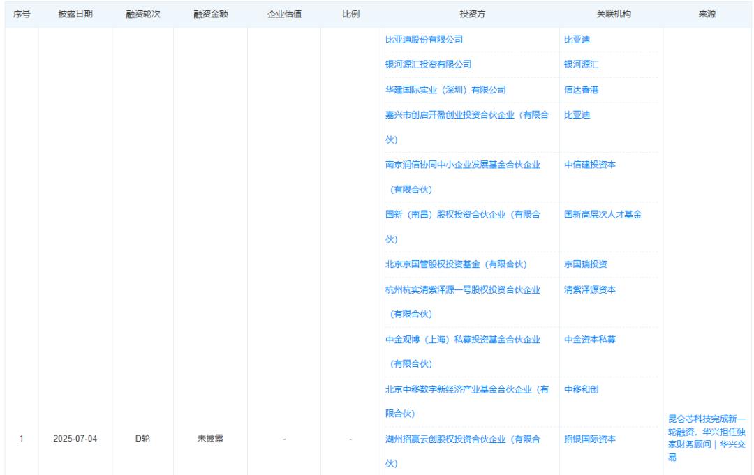 “天眼查”数据显示,截至2025年7月,昆仑芯已完成7轮融资,背后投资方包括包括比亚迪、君联资本、中关村科学城、工银投资、北京市人工智能产业投资基金等,投后估值约29.7亿美元(约210亿人民币)。百度目前对昆仑芯持股59.45%,分拆后仍保持对昆仑芯的控股权。中金公司、海通国际等多家机构从不同角度给出积极判断,昆仑芯潜在估值预期被推升至500亿美元量级 。
