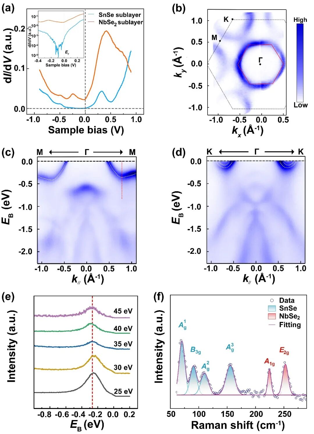 团队像搭建 “三明治” 一样,将一层具有铁电性的硒化锡和一层具有金属性的二硒化铌,长程有序地交替堆叠,仅依靠层间微弱的电荷转移和范德华力实现结合,制备出新型超晶格晶体材料(SnSe)1.16(NbSe2) 。这解决了金属中的自由电子会破坏铁电性的 “记忆” 能力的问题。