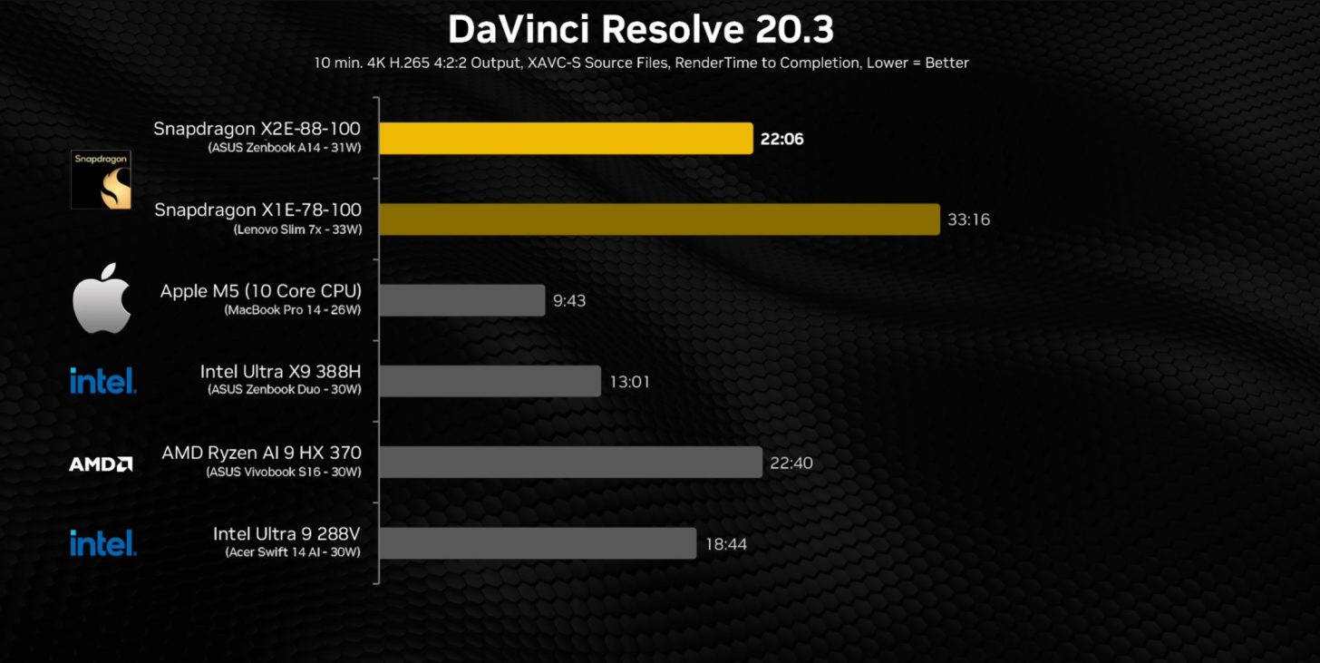 IT之家 2 月 9 日消息,高通去年已推出骁龙 X2 Elite Extreme 与骁龙 X2 Elite 处理器,其中定位稍低的这款 SoC 已在一系列 CPU、GPU 基准测试中经受了考验。测试结果令人意外:在部分项目中,高通骁龙 X2 Elite 不仅大幅领先其上一代产品,甚至在部分场景下超越了苹果的 M5。