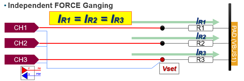 Normal Gang是Force和Sense在DUT board芯片近端短接,Individual是完全地独立资源,上述的两种架构均无法实现电流均衡。