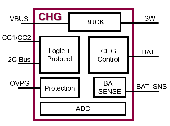 图1. 典型充电管理芯片模块框图