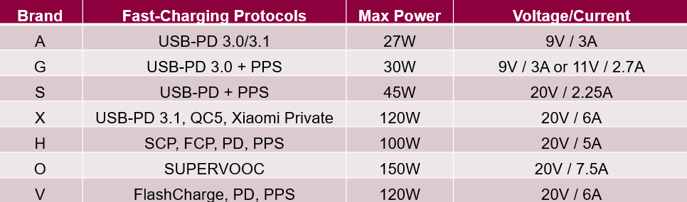 表1.主流快充协议概况