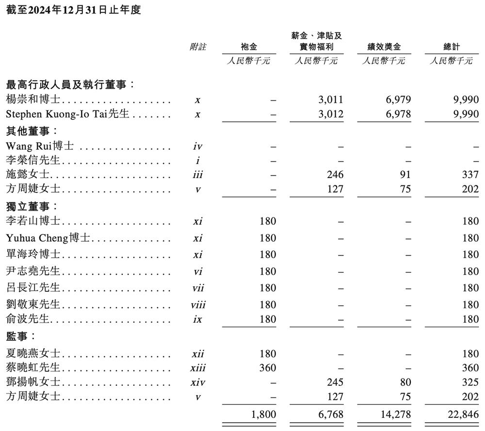 2024年,其董事、最高行政人员、监事收取或应收取的酬金如下: