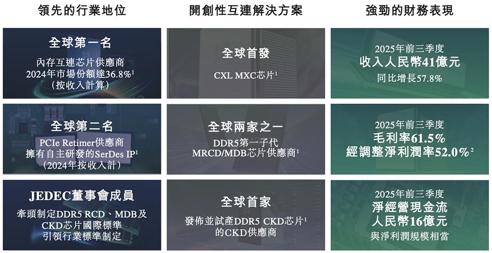 2023到2025年9月底,其超过90%的收入来自互连类芯片,增长主要得益于DDR5渗透率的提升,以及云计算及AI基础设施应用需求提速。
