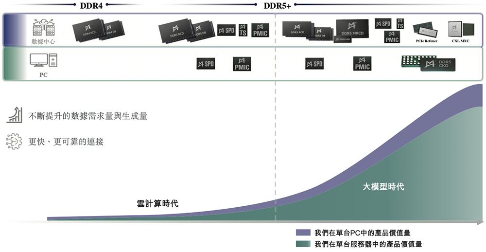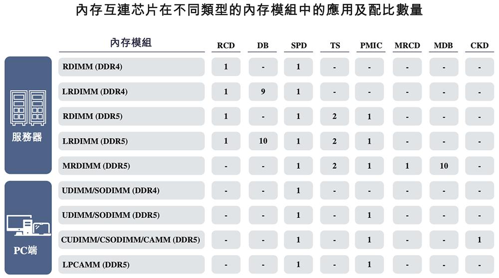 该公司提供全系列DDR2至DDR5内存接口芯片以及DDR5配套芯片,包括SPD(串行检测集线器)、TS(温度传感器)及PMIC(电源管理集成电路)芯片。