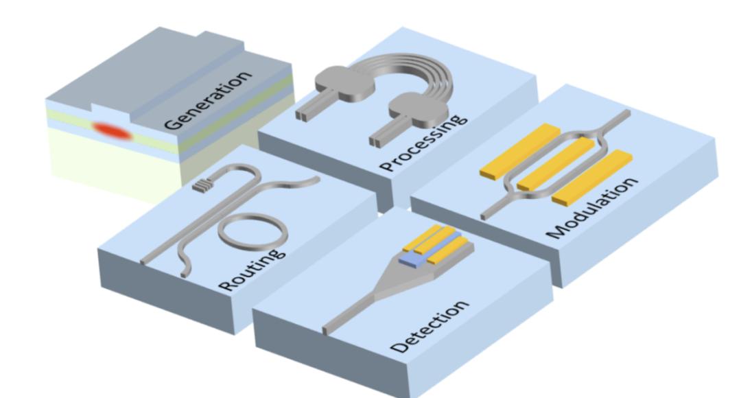 图 9:光子集成电路平台的典型库组件:生成、路由、处理、检测和调制