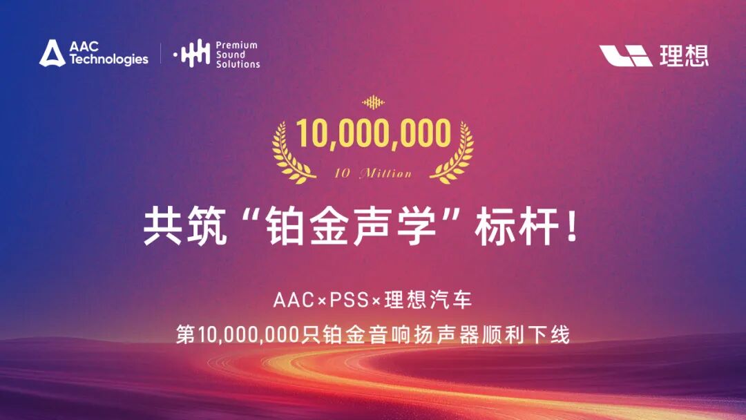 第1000万只铂金音响扬声器不仅是过往合作的硕果,更是开启下一阶段征程的序曲。瑞声科技将继续深化与理想汽车的战略合作,致力于推动铂金音响系统向更智能、集成与个性化的方向演进,为用户带来更加纯净、真实、沉浸的驾乘聆听体验。