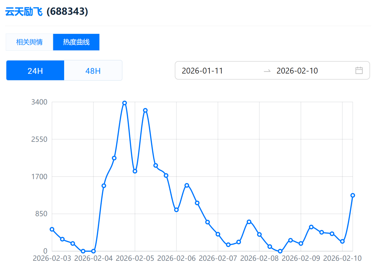 云天励飞热度上升87名、豪威集团热度上升78名、中科曙光热度上升38名、欣旺达热度上升16名。