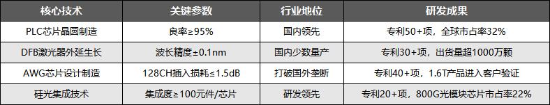 技术优势方面,公司核心技术聚焦于光通信芯片的关键工艺,在PLC芯片、DFB激光器芯片、AWG芯片、硅光集成等领域形成了国内领先优势,核心技术详情如下: