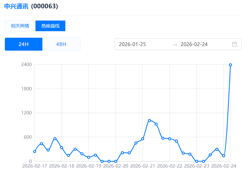 1、【上市企业热度观测日志】2月24日:马年开门红,中芯国际、华工科技、中兴通讯热度领跑