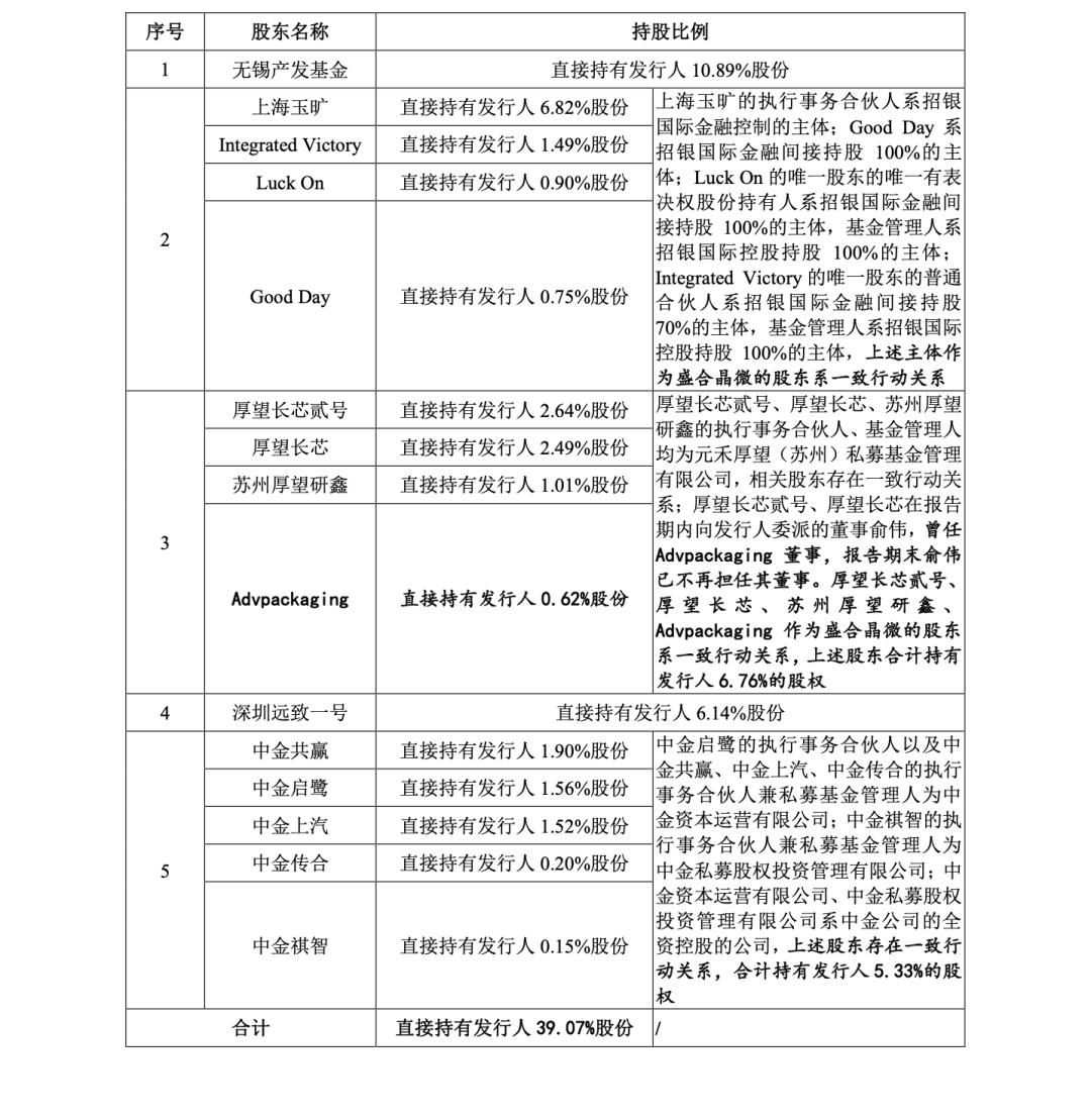 盛合晶微IPO后,上述前五大股东分别持股8.17%、6.46%、5.08%、4.60%、4.11%。