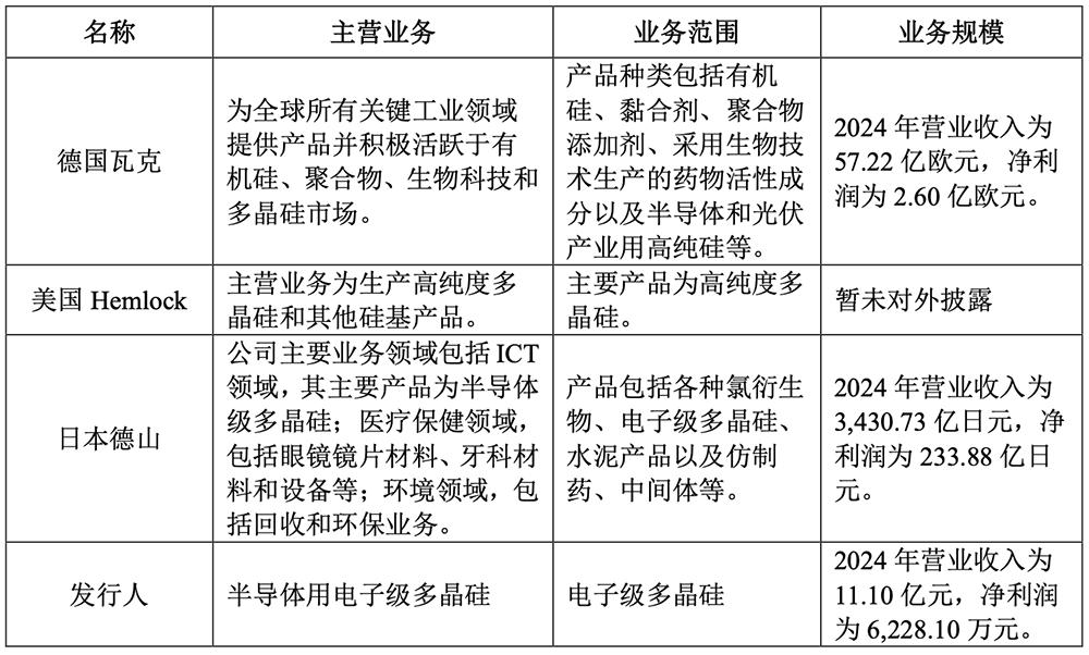 相较于国际竞争对手,鑫华科技虽在整体规模和历史积淀方面存在差距,但业务聚焦度更高,专注于电子级多晶硅这一细分赛道。