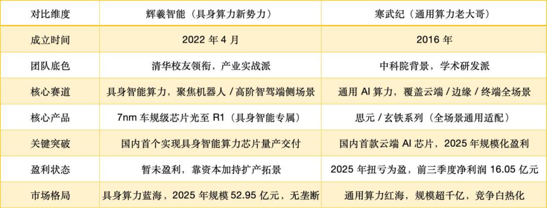 辉羲智能没有走寒武纪“十年磨一剑”的慢路子:2024年9月,首款7nm车规级芯片光至R1流片点亮,10月正式发布,2025年如期实现量产交付。仅用4年,就完成了具身智能算力芯片从0到1的核心突破,只是目前也未盈利。