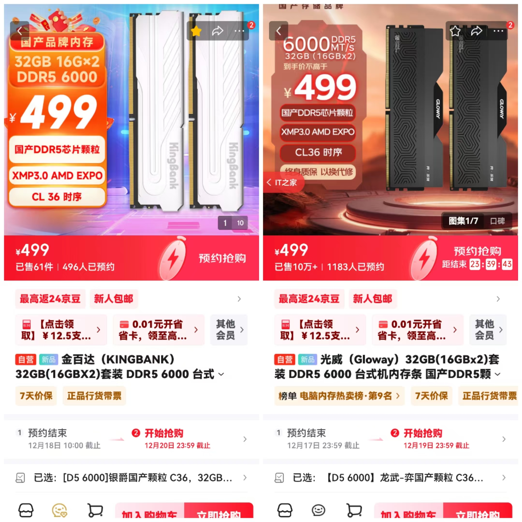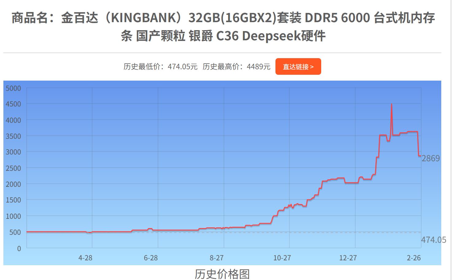 同样的6000MHz频率、同样的CL36时序、同样的国产颗粒,在当时,这一对内存条,只需要499元!现在的价格相比较是暴涨了几乎500%。