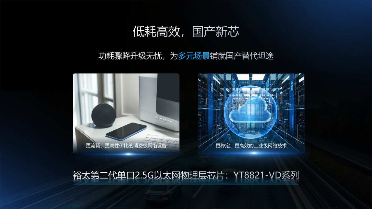 新兴基础设施:YT8821H-VD利用多速率兼容(10M/100M/1G/2.5G)适配老旧终端;为边缘服务器提供2.5G低成本连接,支撑AI推理、物联网网关数据处理,可通过2.5G+10G SFP+混合交换机,平滑过渡数据中心边缘网络。