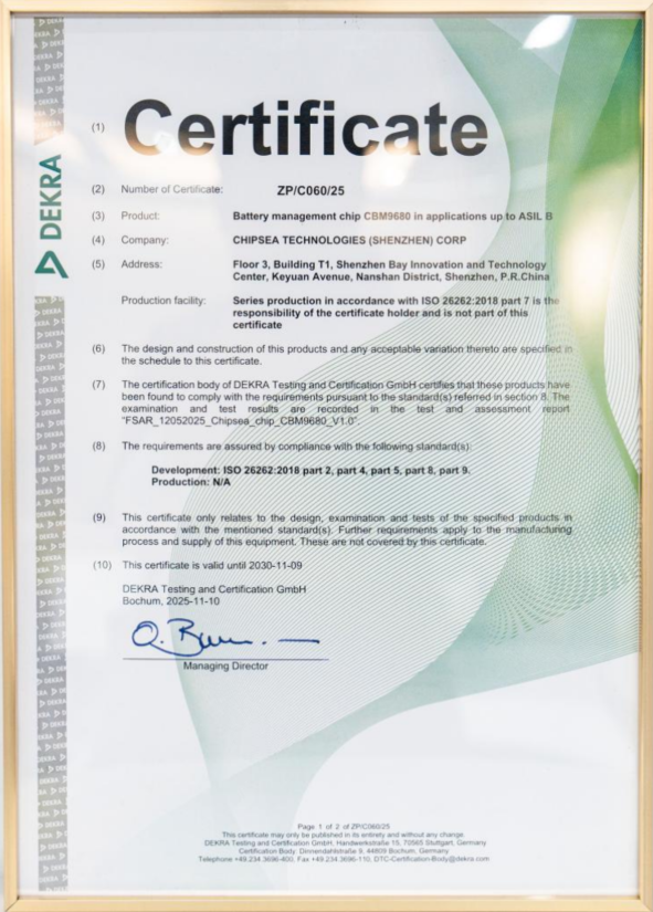 三要素组合,最终指向了行业共识的ASIL-B等级。芯海科技CBM9680通过车规功能安全ASIL-B认证,从芯片架构底层就为满足GB 48001-2026第5.4条“断电后必须保留至少1次解锁能力” 提供了可靠的硬件保障。