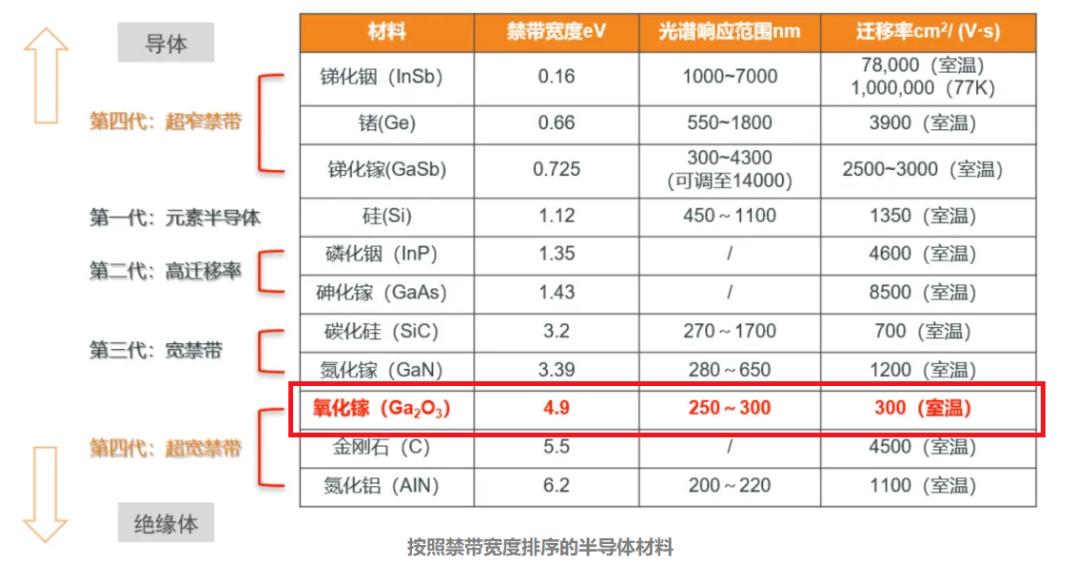 据了解,氧化镓的禁带宽度高达4.9eV,远超硅材料的1.1eV,高于碳化硅的3.2eV和氮化镓的3.39eV。这种超宽禁带特性意味着电子需要更多的能量从价带跃迁到导带,因此氧化镓具有耐高压、耐高温、大功率、抗辐照等特性,特别适合大功率电子器件应用。
