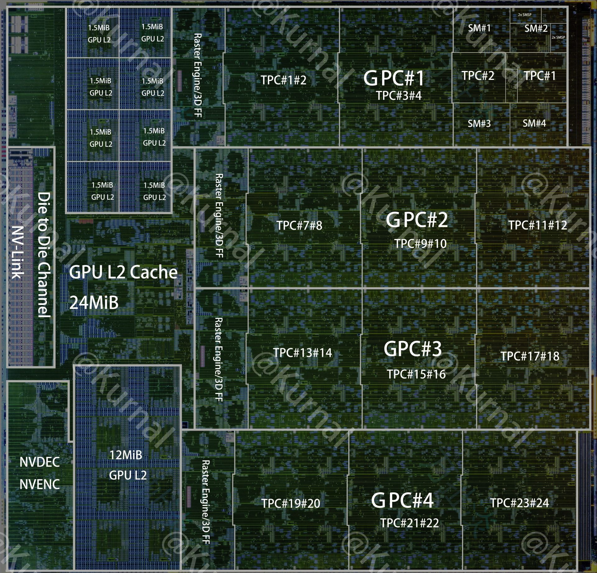 具体数据显示,GB10 的整体芯片尺寸为 12.91 x 29.55 毫米,其中 GPU 芯粒尺寸为 12.91 x 13.45 毫米,其顶层的图形处理集群(GPC)面积增加了 12.5%,纹理处理集群(TPC)增加了 16.7%,流式多处理器(SM)也增大了 13.5%。