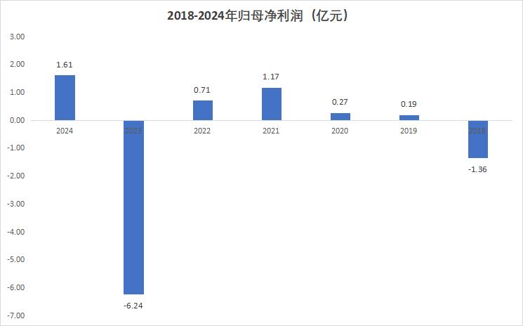2018年公司亏损1.36亿元,2019年和2020年分别仅实现0.19亿元和0.27亿元利润。2021年和2022年盈利有所改善,达到1.17亿元和0.71亿元,但2023年又出现6.24亿元巨亏,将此前的修复几乎全部抹去。2024年虽然扭亏,也仅实现1.61亿元利润,仍远低于前一年的亏损规模。