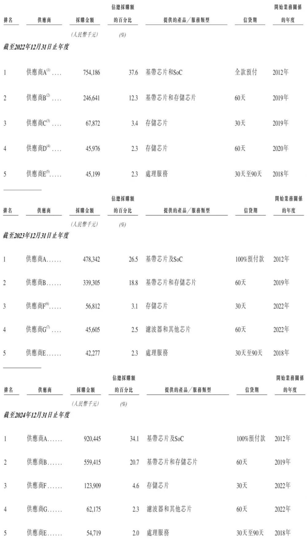“供应商A”在过去3年以来都是美格智能最大的单一供应商,主要为后者提供基带芯片和SoC。结合招股书中对这家企业的描述和美格智能的产品信息,可以推测这一供应商应为高通。