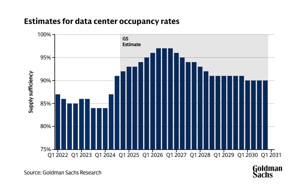 高盛预计,与2023年相比,到2030年,全球数据中心电力需求将增长165%