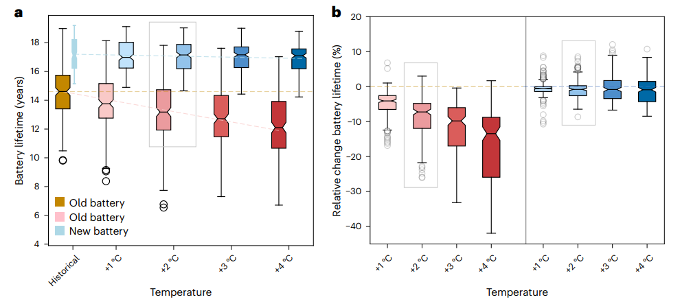 1、气候变化将显著缩短旧电池寿命,新电池技术有效抵消这一影响