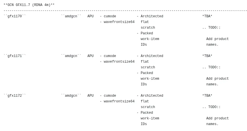 尽管代码库中新增了 GFX1171 和 GFX1172 两个变体,但底层文件显示,它们与基础款 GFX1170 拥有完全相同的指令集功能,业界推测其主要区别可能在于计算单元规模或运行频率的配置差异。