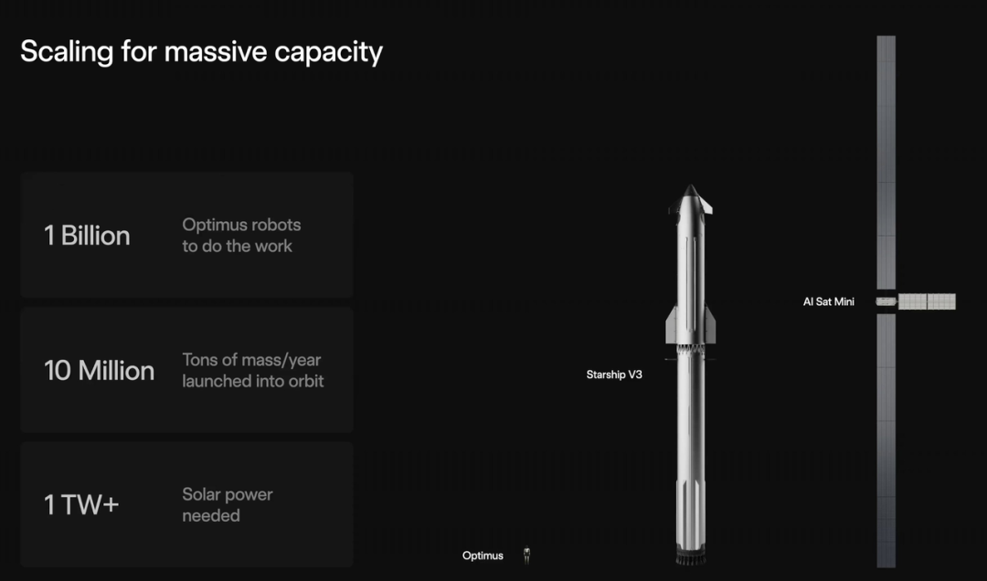 用他的原话来说,“基于太空的人工智能,显然是实现规模化发展的唯一途径”。