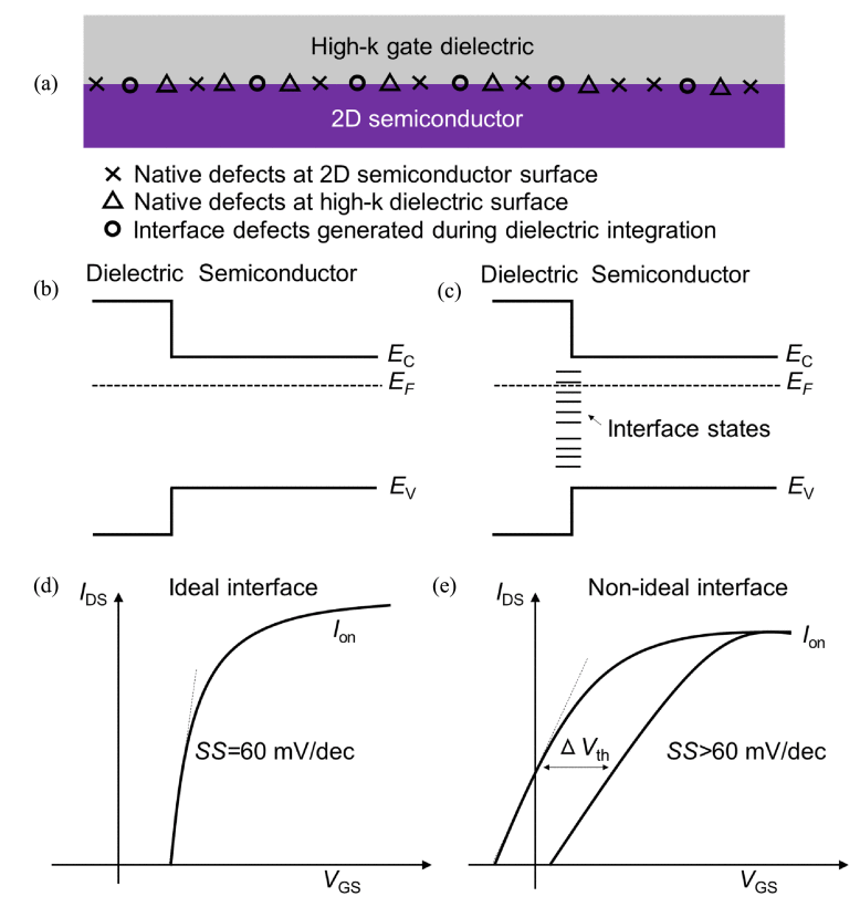 图1.高k栅介质/二维半导体界面与晶体管电性能的构效关系