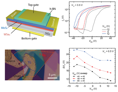 图3.二维半导体异质结器件电回滞起源与调控研究