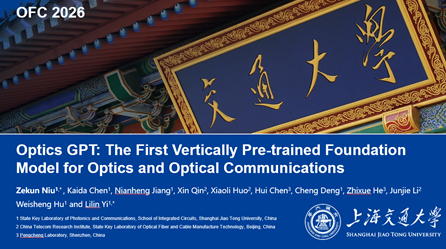 近期,上海交通大学集成电路学院(信息与电子工程学院)义理林教授团队在光通信与光学领域取得重要突破,发布光领域垂直大模型Optics GPT。该成果论文以“Optics GPT: The First Vertically Pre-trained Foundation Model for Optics and Optical Communications”为题,入选OFC 2026 Post-Deadline Paper(PDP)。