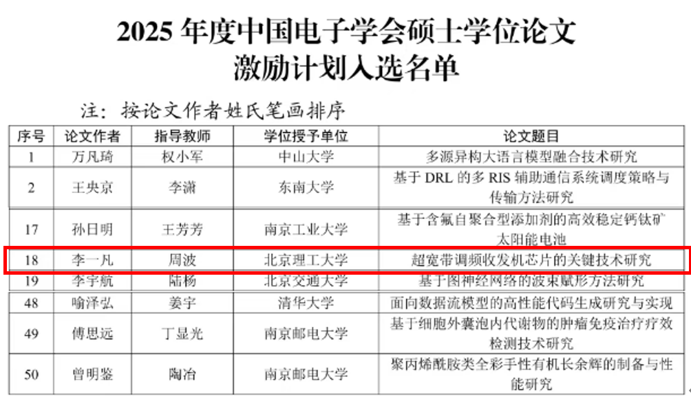 4.北京理工大学集成电路与电子学院学子荣获中国电子学会优秀硕士论文!