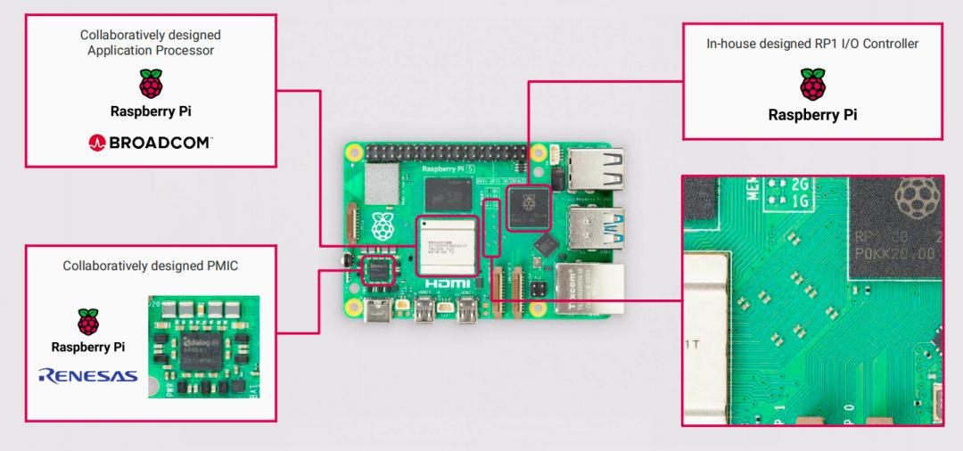 2023年,公司在Raspberry Pi 5中引入自研I/O控制芯片(RP1),承担USB、PCIe、GPIO等接口功能,正式进入更复杂的SoC分工体系。虽然树莓派当下的主处理器仍由Broadcom提供,但不得不说他们已经开始在“系统关键节点”上建立自研能力。