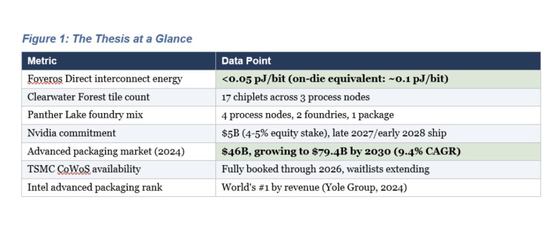 全球市值最高的半导体公司,其GPU几乎为全球所有人工智能数据中心提供动力,审视了英特尔(一家股价接近十年低点、代工部门每季度亏损数十亿美元、晨星评级为“无护城河”的公司),并决定开出一张足以收购4%至5%股权的支票。后续,黄仁勋层告诉媒体,英特尔拥有“Foveros的多技术封装能力,这在这里确实至关重要”。